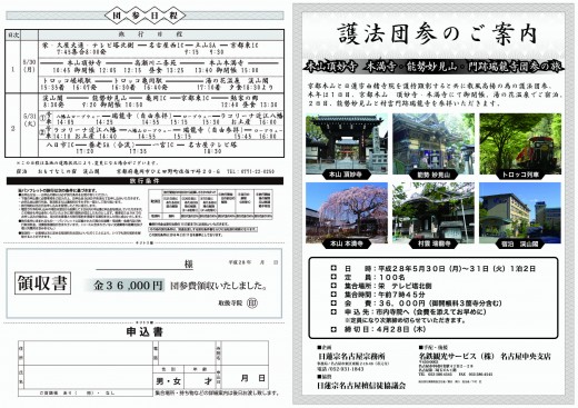 平成28年度、名古屋宗務所主催「護法団参」が決定しましたのでご案内致します。