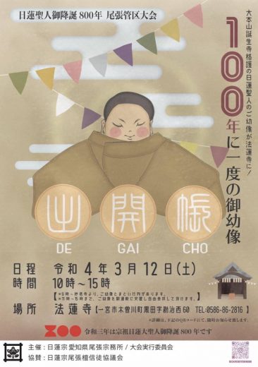 合掌 令和4年3月12日に、一宮市法連寺にて日蓮聖人御降誕800年尾張管区大会を行います! 千葉県…