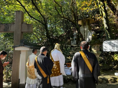 11月9日(水)金華山題目塚前に於いて、岐阜城初代城主 二階堂行政をはじめ、戦没者慰霊法要を執り…