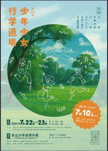 7月22日~23日に佐賀市富士町にある北山少年自然の家で第62回少年少女行学道場を開催いたし…
