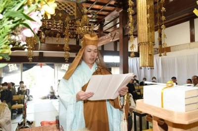4月29日佐賀市常照院で、第30世福山智哉上人の法燈継承晋山式が営まれました。 お題目の声…