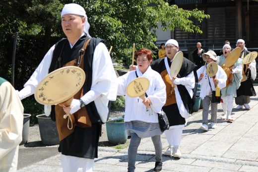 平成31年4月28日(日)のご聖日、当会に於いて立教開宗唱題行脚を行った。当日は、募った檀信徒の方々にもご参加いただき、行脚前には太鼓の練習をし本番に備えた。