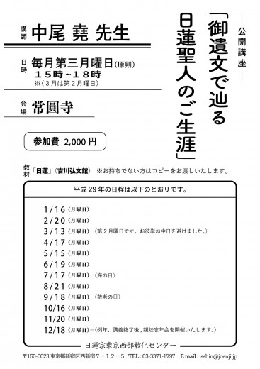 日蓮宗東京西部教化センターでは、中尾堯先生を講師にお迎えし勉強会を行っています。 毎月第3月…