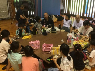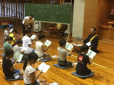 修養道場2日目は朝のお勤めから始まりました。 昨日作った数珠を使い、練習したお経を一生懸命みんな…