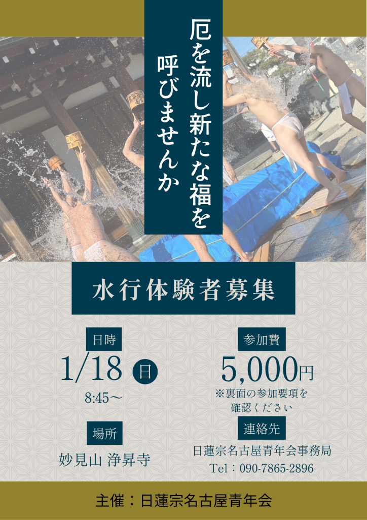 心身を清め、志を新たにする同志「水行男志、水行女志」を集います。