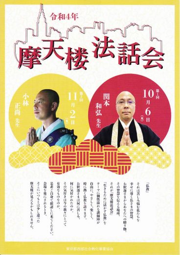 令和4年摩天楼法話会 摩天楼法話会メインテーマ 「わかる言葉で聴く仏教」 第一回 日時 令和4…