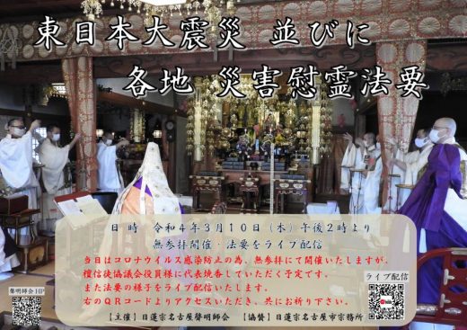 名古屋聲明師会では下記の通り「東日本大震災並びに各地災害慰霊法要」を行います。