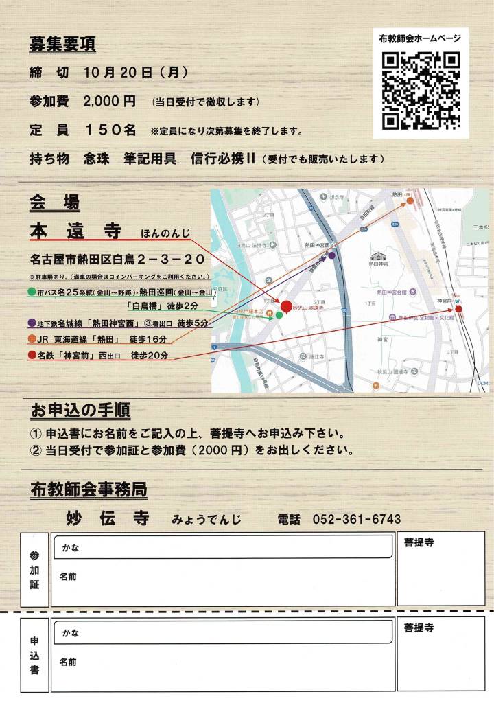 申込用紙(※パンフ裏)を印刷の上、申込書部分のみ
