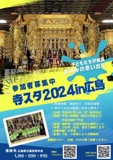 【開催のお知らせ】令和6年度 寺スタ!~子ども向け夏のお寺修行~