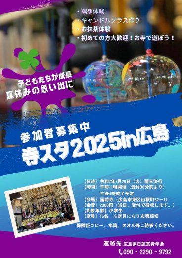 【開催のお知らせ】令和7年度 寺スタ!~子ども向け夏のお寺修行~