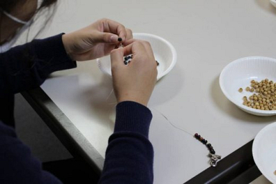 11月11日は「紅葉企画」と題しまして数珠作り体験を行いました。 本山本土寺様は紅葉でも有名であり…