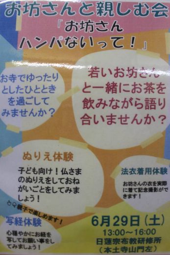6月29日(土)13:00より本土寺で開催される「枝豆を楽しむ会」とのコラボ企画として お坊さんと親し…