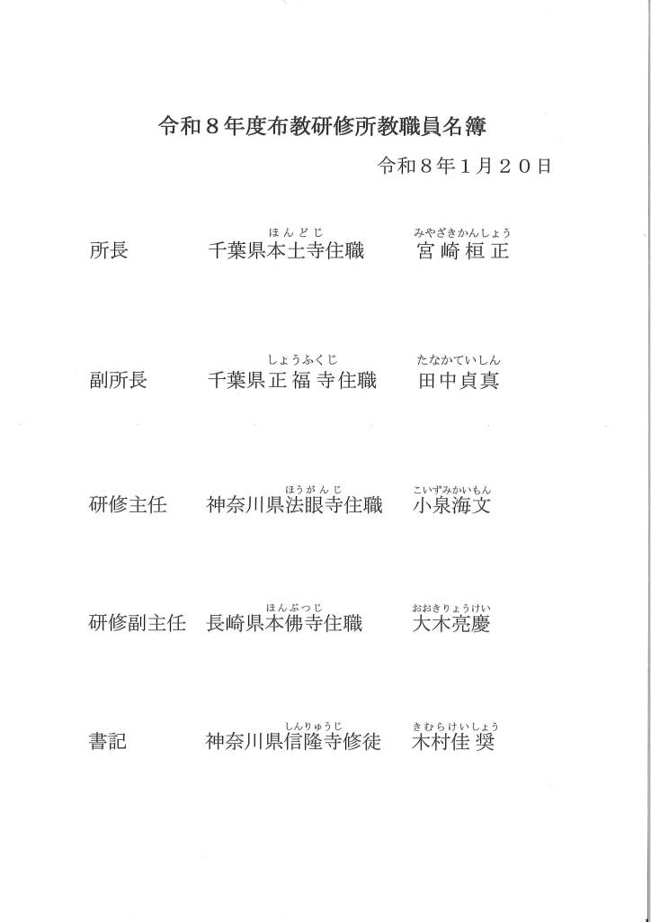 《教職員紹介》令和8年度 第63回日蓮宗布教研修所