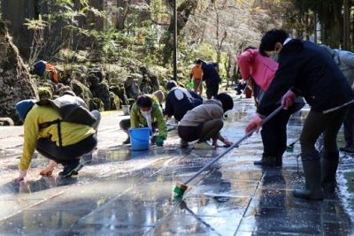 今年は特に御廟所参道の石畳は、雨や湿気による汚れや苔によりとても滑りやすい状態でした。 御廟所…