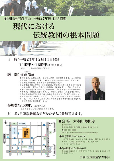 平成23年12月25日 全国日蓮宗青年会 会長 伊東政浩 行学道場のご案内 合掌 初冬の候 …