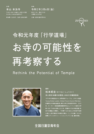 令和2年1月吉日 全国日蓮宗青年会会長 藤井教祥 行学道場担当委員長 森 皓賢 (公…
