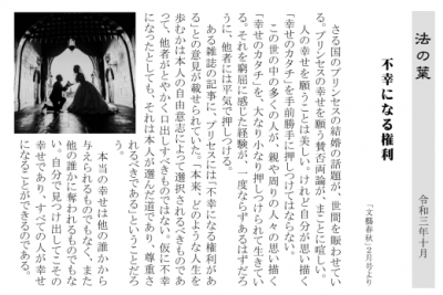 不幸になる権利 「文藝春秋」2月号より さる国のプリンセスの結婚の話題が、世間を賑わせてい…