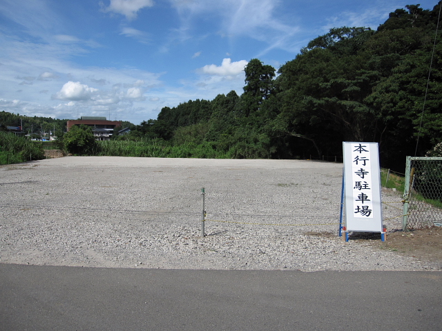 千葉東金有料道路山武成東ICを下車し、インター入口信号を左折して進み(5分)、総武本線の踏切を横断し300㍍でJA山武(農協)前を右折し100㍍で作田川を横断し150㍍進むと上り坂手前の小川沿いの道を左折するとすぐに当山裏の大駐車場が見えます。さらに白壁沿いに進むと当山山門が見えます。山門前にも駐車場があります。