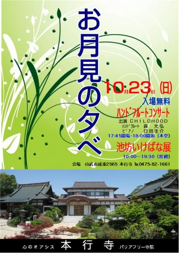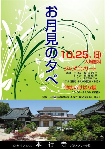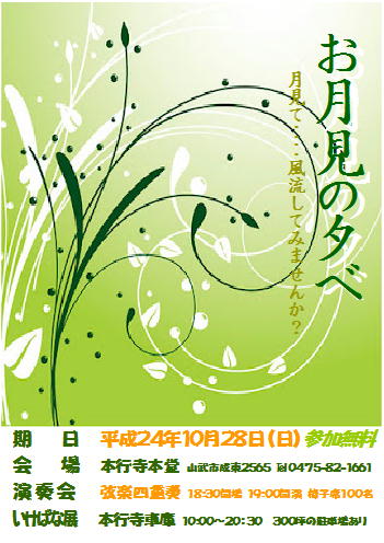 開催日:平成24年10月28日 演奏会会場:本行寺本堂 開場18:30 開演19:00 閉演20:00予定 演奏…
