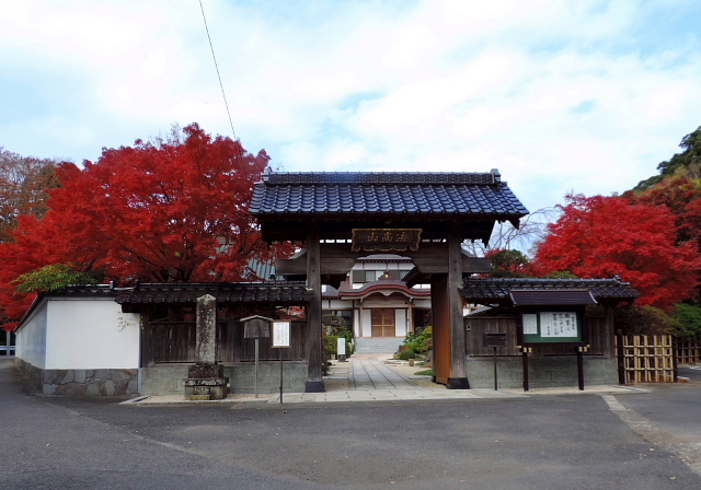 JR成東駅より徒歩8分。駅前200㍍進み成東駅入口信号を右折、道なりに右手へ進み400㍍で信号を渡り100㍍で橋を渡り100㍍で右手「だいもんクリーニング」と「田舎寿しことぶき」の間の細い道を右折し100㍍進むと正面に当山山門が見えます。