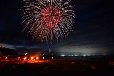 水中スターマインなどが祭りのフィナーレを飾る 千葉県大網白里市で行われる祭りのフィナーレを飾る…