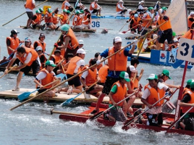南白亀川イカダのぼり大会 白子町を東西に流れる幅90メートルの二級河川、南白亀川。 平坦…