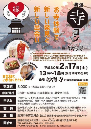 勝浦『寺コンin妙海寺』を開催します。 ~お寺体験で 新しい発見と 新しい出会いを~ …