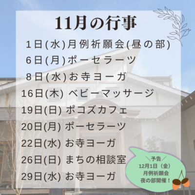 【11月の行事予定】 【11月の行事予定】 ●1日(水)月例祈願会〜昼の部〜 毎月1…