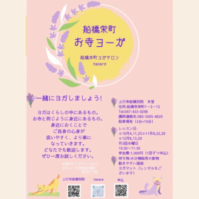 【 【募集中!】お寺でヨーガ!10月〜12月レッスン日程】 毎月3回、水曜日に本堂でヨガク…