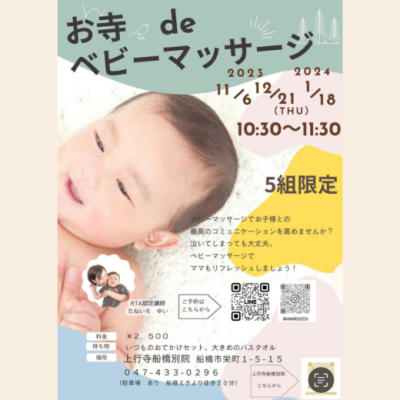 【お寺deベビーマッサージ教室】 11月・12月・1月レッスン日程
