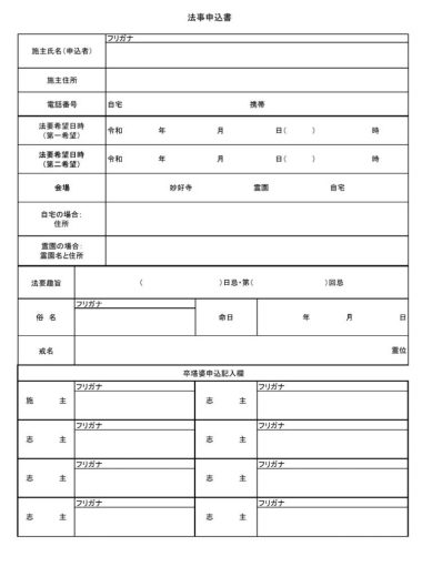 【法事申込書】 法事(年回忌法要)をお申し込みの際、お電話や自作の申込書にて年回忌法要のお…