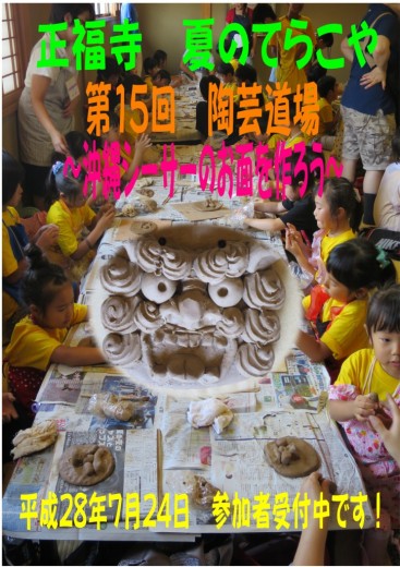 正福寺 てらこや「第15回 陶芸道場」 ~沖縄シーサーのお面を作ろう~ 陶芸家・小泉…