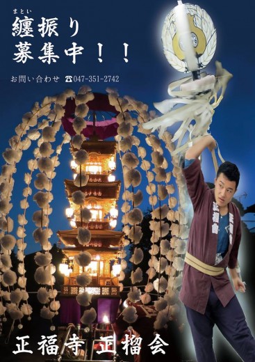 お会式に向けてまとい振りを募集してます。 まといを先頭にうちわ太鼓、笛、鉦でお会式囃子を演奏…