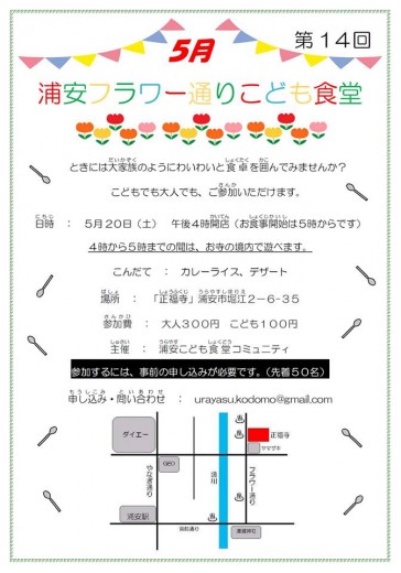 5月のこども食堂は20日(土)です。 参加ご希望の方、お問合せは、 urayasu.kodomo@gmail.com まで…