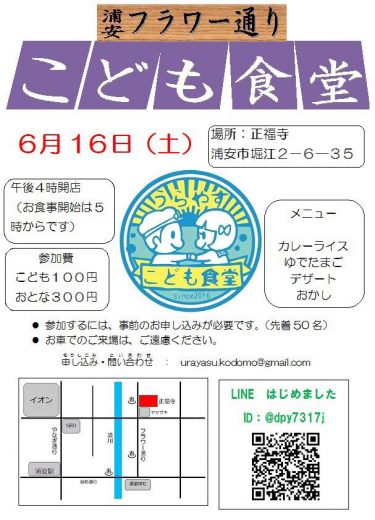 第27回目になりました浦安フラワー通りこども食堂 6月16日(土)午後4時開店、食事開始は5時からです…