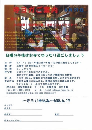~6月の寺ヨガご案内~ 日 時 6月17日(日)午後2時~4時(10分前に集合し…