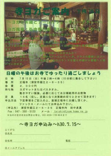 7月の寺ヨガご案内