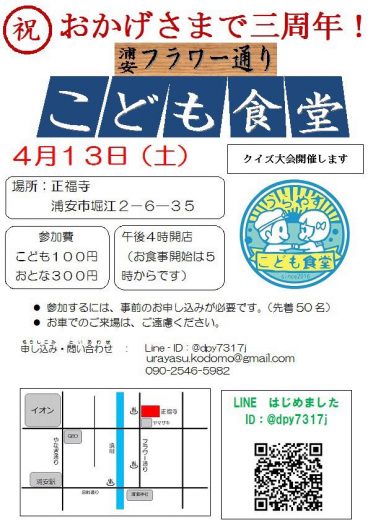 4月13(土)午後4時開店・お食事は5時からです。 場所:正福寺 浦安市堀江2-6-35 参加費:おと…