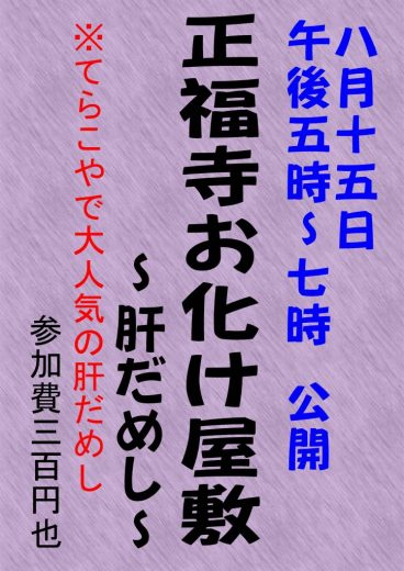 昨年に続き、てらこやで大人気の肝だめしを一般公開致します。 よかったらどうぞ~(^.^)