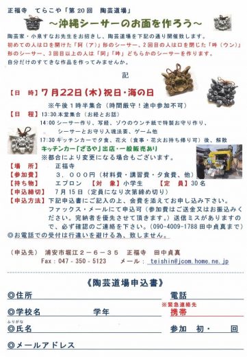 正福寺 てらこや「第20回 陶芸道場」 ~沖縄シーサーのお面を作ろう~ 陶芸家・小…