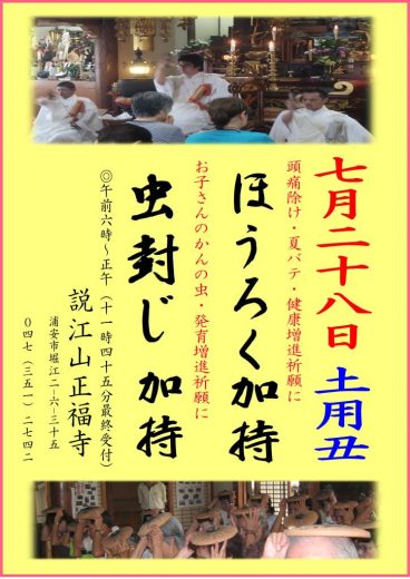 土用丑の日《ほうろく加持・虫封じ加持》 当山では毎年夏の土用丑の日に、頭痛封じや夏バテ…