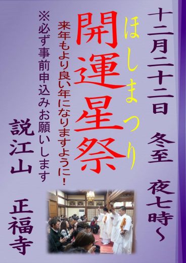 星祭祈願会 イベント・活動 記事公開日:2022年12月01日 この記事は最終更新日から1年以上経過しています。記事の内容やリンク先については現在と状況が異なる場合がありますのでご注意ください。 開催日:2022年12月22日 ☆星祭祈願会の御案内 ~来る令和5年の開運をお祈り申し上げます~ 12月22日冬至 午後7:00~ ※必ず事前のお申し込みをお願い申し上げます。 この記事は最終更新日から1年以上経過しています。記事の内容やリンク先については現在と状況が異なる場合がありますのでご注意ください。 PREV NEXT 一覧へ