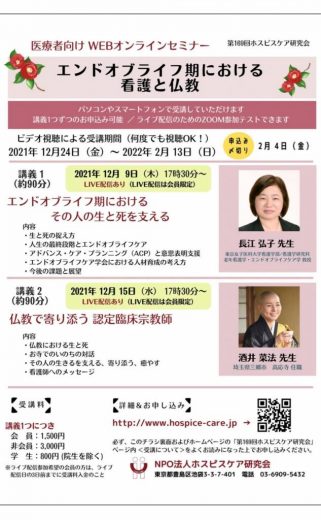ホスピスケア研究会主催 エンドオブライフ期における看護と仏教 ~医療者向けオンラインセミ…