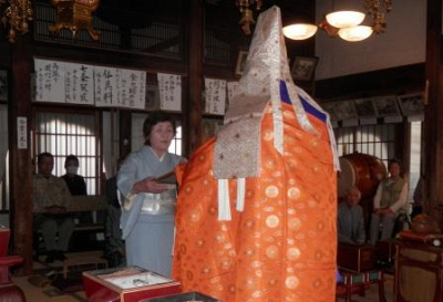 3月19日彼岸法要の後 前筆頭総代故野口富三氏の御妻女当子氏に日蓮宗管長より感謝状の授与式が行…