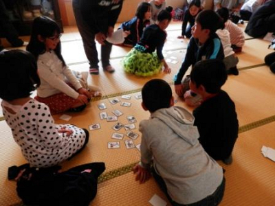 4月27日 小山の歴史と未来をつなぐ会主催で、小学生約40名 ボランティアが客殿2階で下野かる…