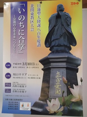 10日(土曜日) 宗祖日蓮大聖人降誕800年慶讃 北関東教区大会が埼玉県川口市の川口リリアにて開催され…
