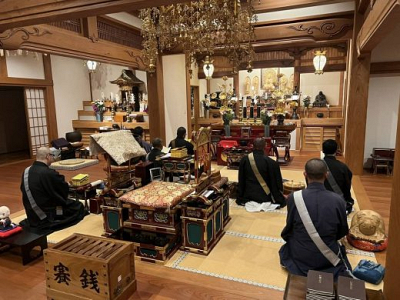 毎月、伊豆の若手僧侶の有志のお寺で読経をおこなっています。今月は霊光寺の当番で、8名の参加で…