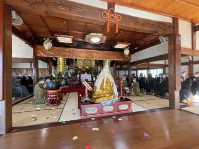 行列を終え、午前11時より本堂にて法燈継承式が執り行われました。 法縁役員や組寺の方などの目上の…