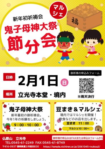 新年初祈祷会 鬼子母神大祭 節分会 鬼子母神大祭では、皆様の1年間の無病息災・家内安全・本…