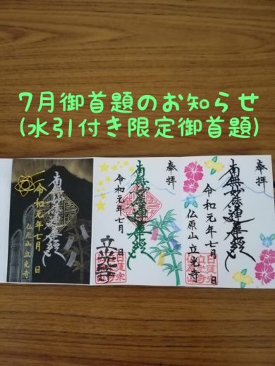 [ 7月 御首題のご案内 ] 7月の御首題をご案内致します。 7月の花は、ハイビスカスです。當山に咲い…